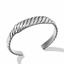 Sculpted Cable Contour Cuff Bracelet In Sterling Silver