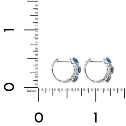 14K White Gold Diamond And Sapphire Huggie Hoops