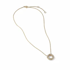 Petite Pavé Crossover Pendant Necklace In 18K Yellow Gold With Diamonds