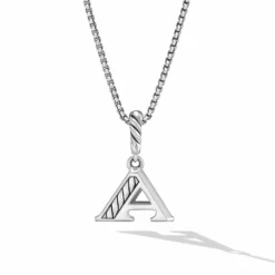 Pavé Initial Pendant Necklace In Sterling Silver With Diamond A