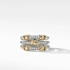 Petite Helena Three Row Ring With 18K Yellow Gold And Diamonds