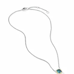 Petite Chatelaine® Pendant Necklace With Hampton Blue Topaz, 18K Yellow Gold Bezel And Pavé Diamonds