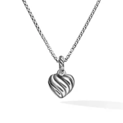 Petite Cable Heart Pendant Necklace In Sterling Silver With 14K Yellow Gold And Rhodolite Garnet, 17.1mm