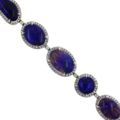 18K White Gold Graduated Opal & Diamond Halo Bracelet