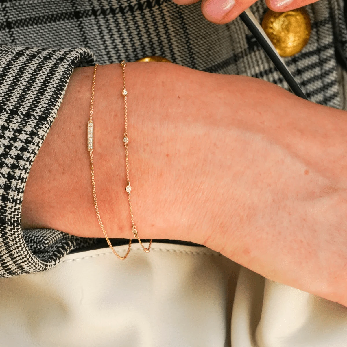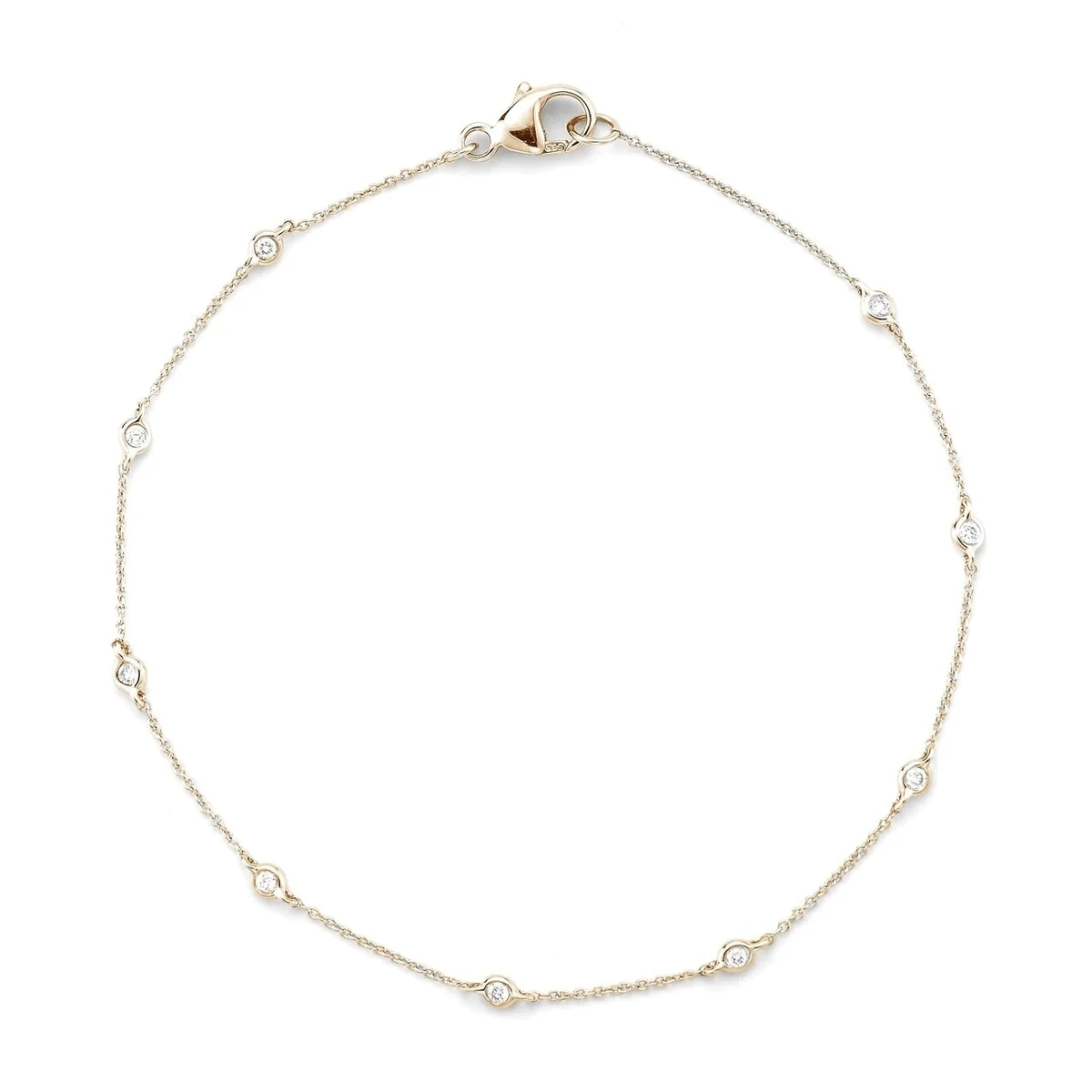 14K Yellow Gold Bezel Set Diamond Station Bracelet