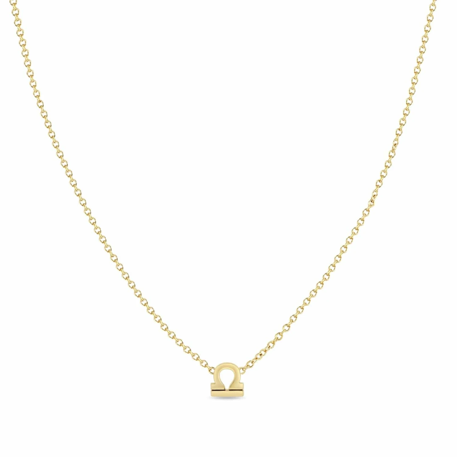 14k yellow gold necklace with a very small libra zodiac pendant.