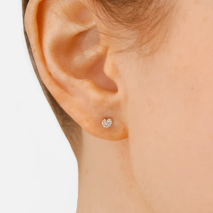 Diamonds are delicately pavé set in yellow gold hearts, mounted on a post. These micro studs are the ideal compliment to your ear stack or can be worn alone.