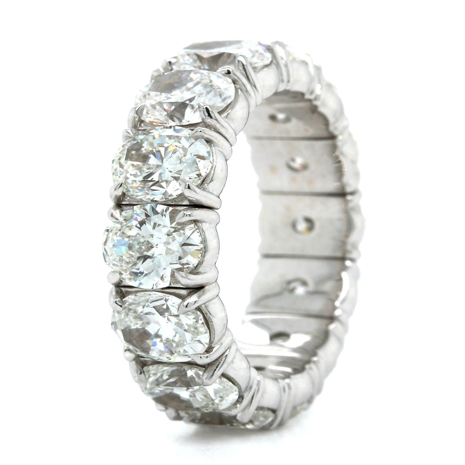 18k white gold stretch ring featuring 14 prong set oval diamonds.