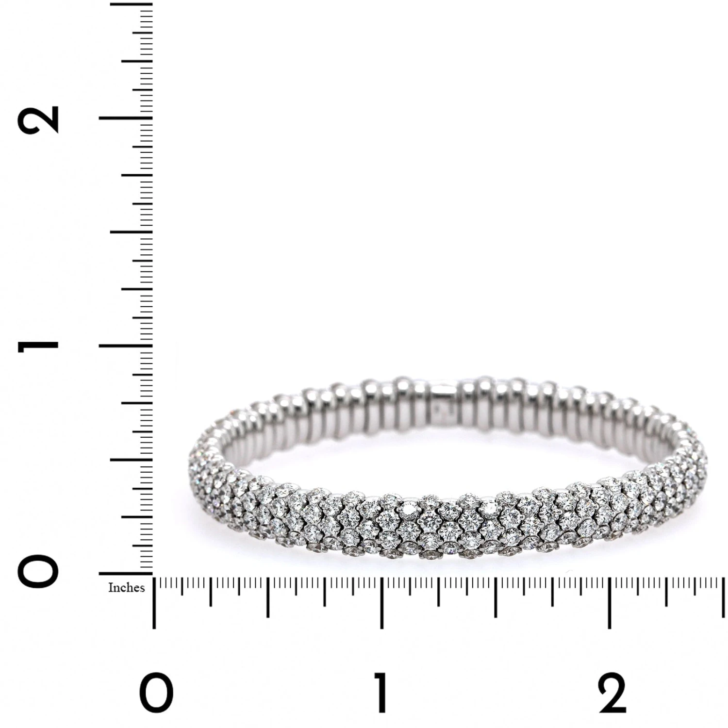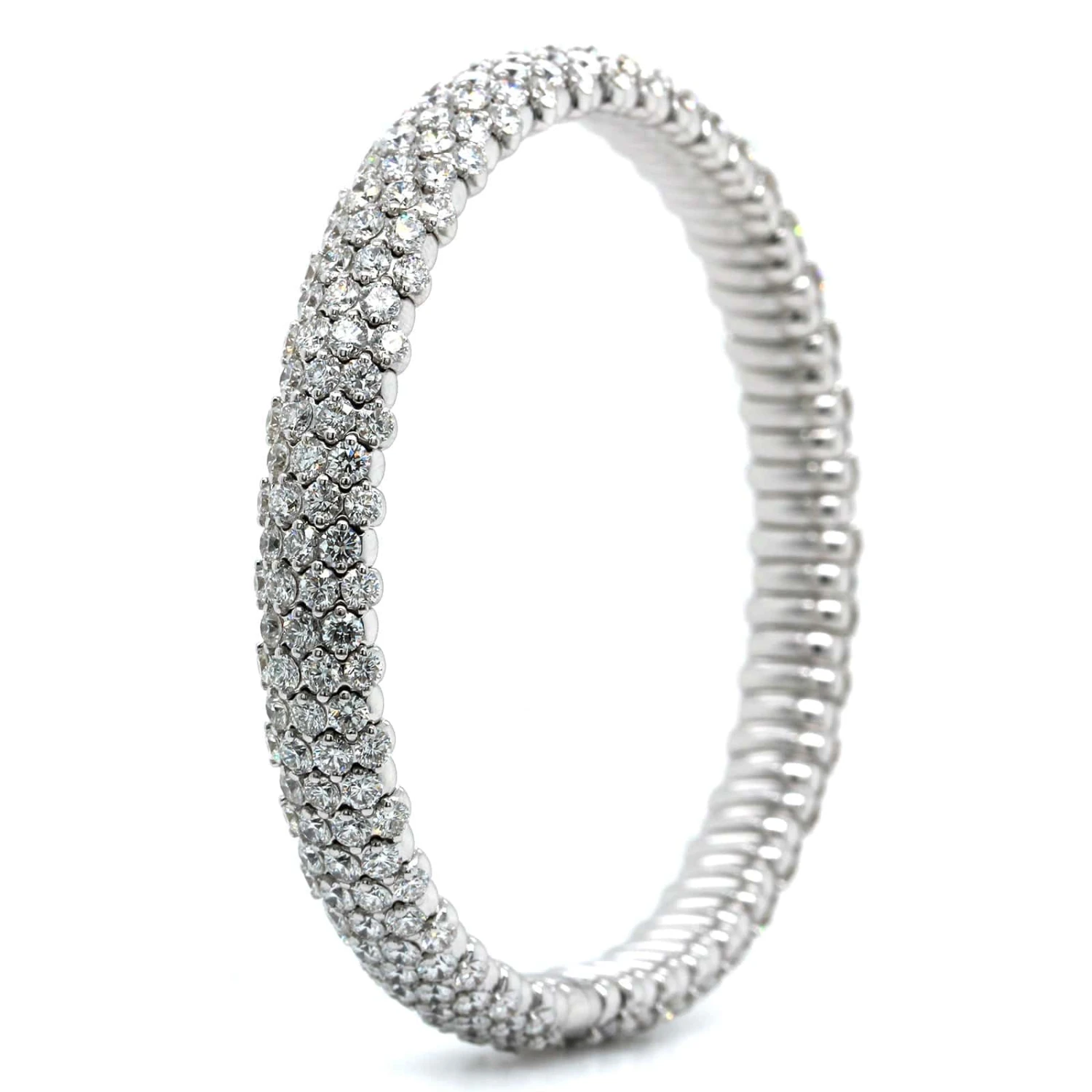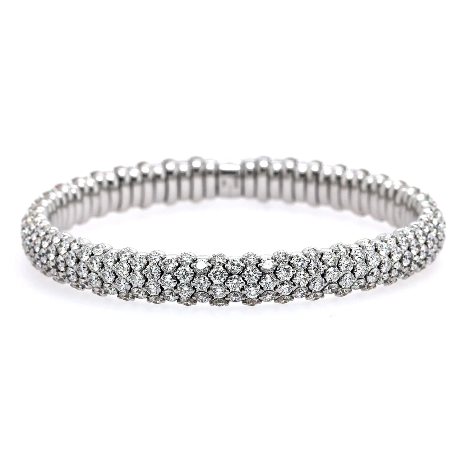 18k white gold stretch bracelet featuring many pave set diamonds throughout.