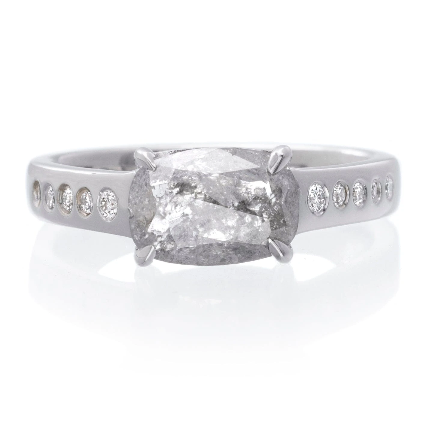 18K White Gold Rough Cushion Cut Rose Bezel Diamond Ring