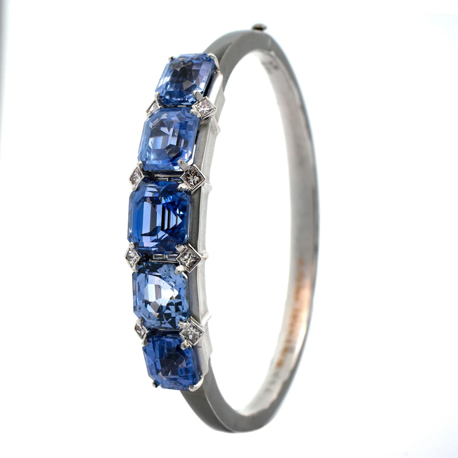 18k white gold bracelet featuring emerald cut sapphires and diamonds.
