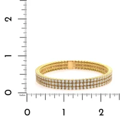 18k yellow gold stretch bracelet featuring 3 rows of diamonds.