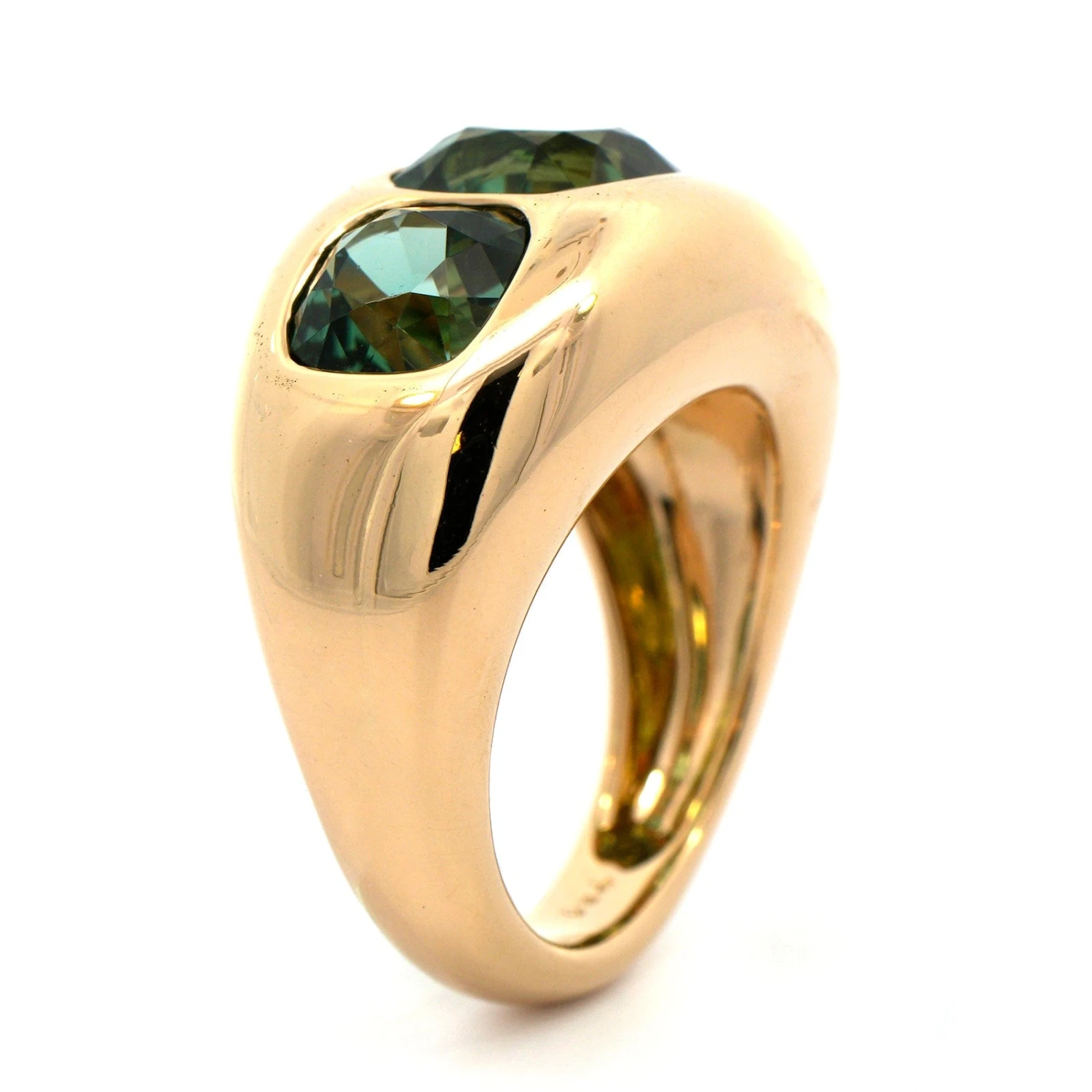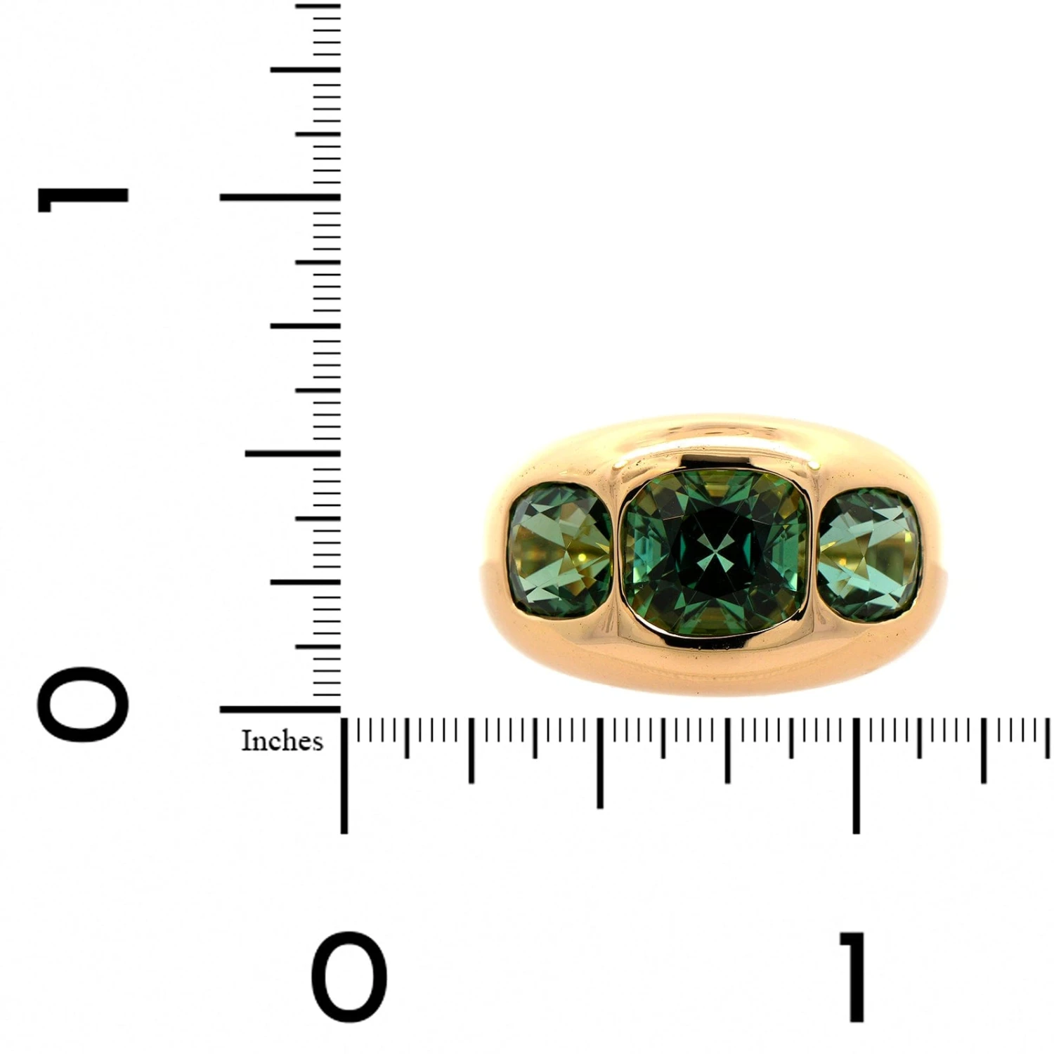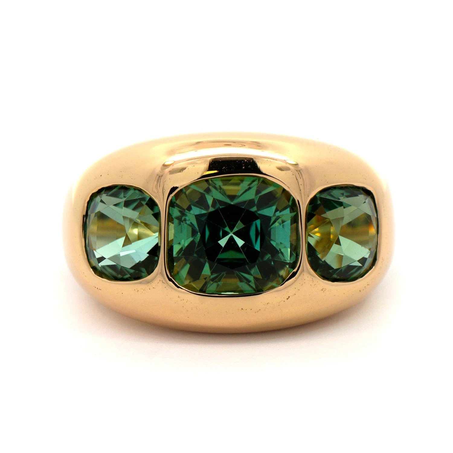18K Yellow Gold 3 Stone Green Tourmaline Ring