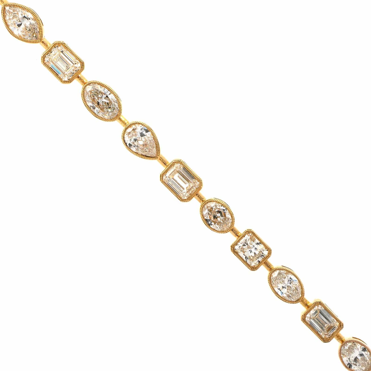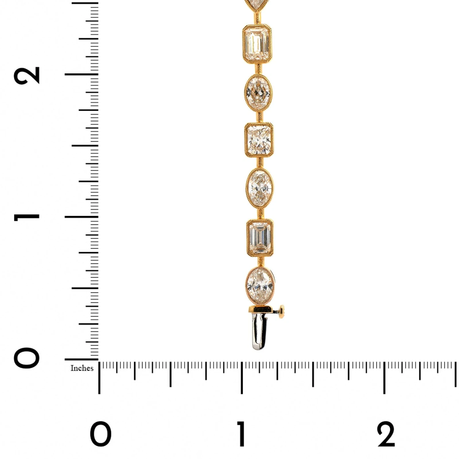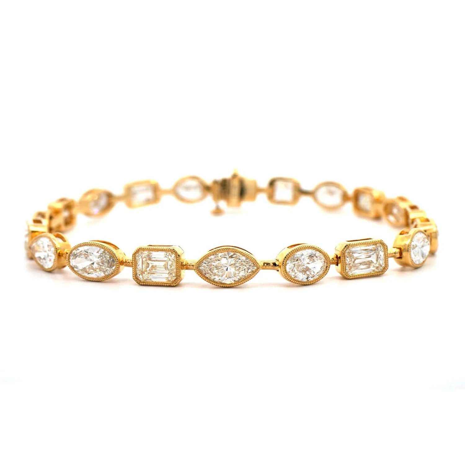 18k yellow gold bracelet featuring oval, pear, emerald cut, and radiant cut diamonds.