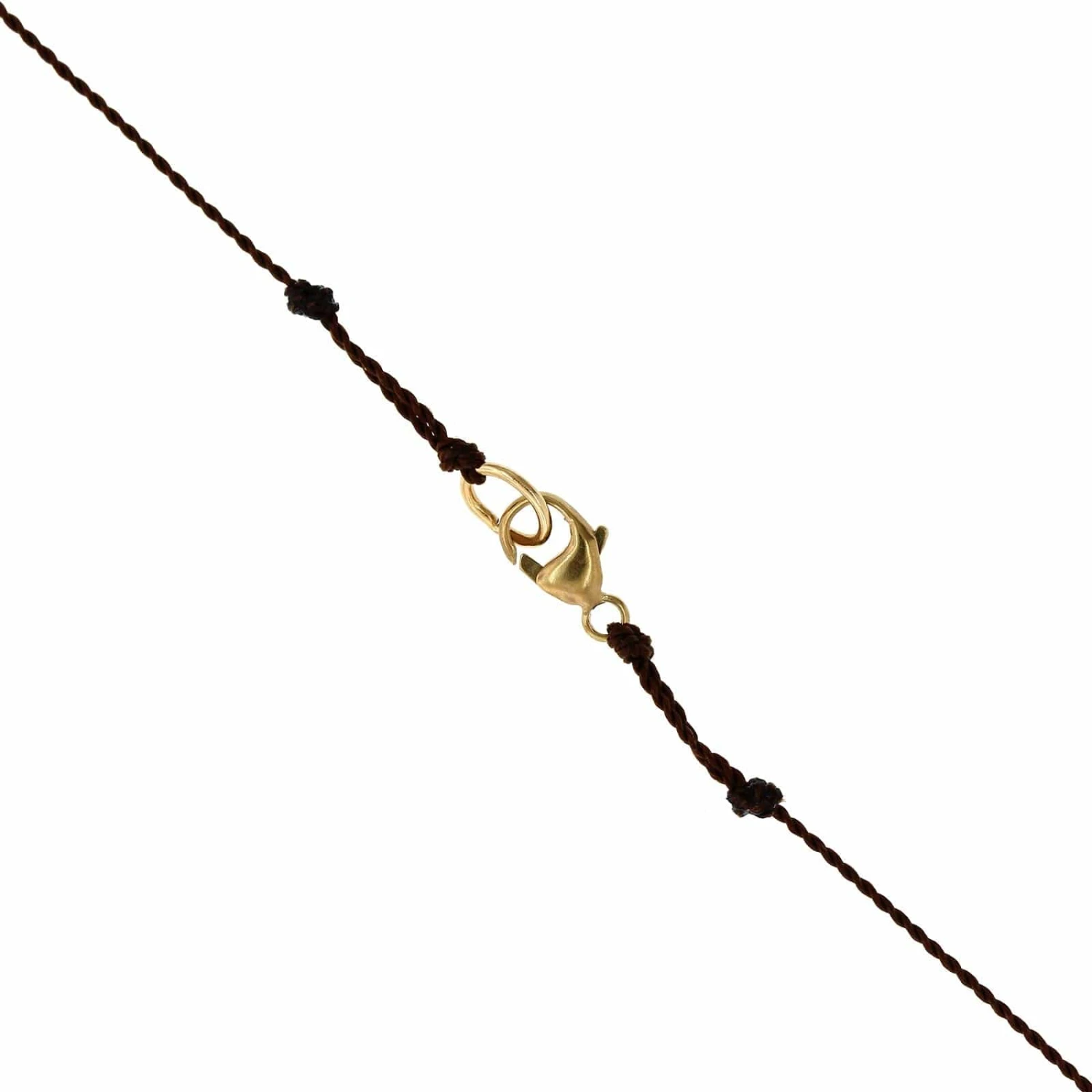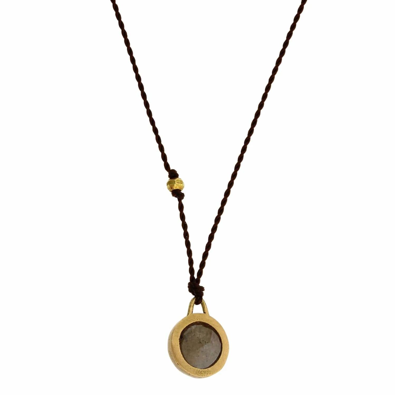 Strand necklace with rustic rose cut brown diamond set in 18k yellow gold with gold clasp.