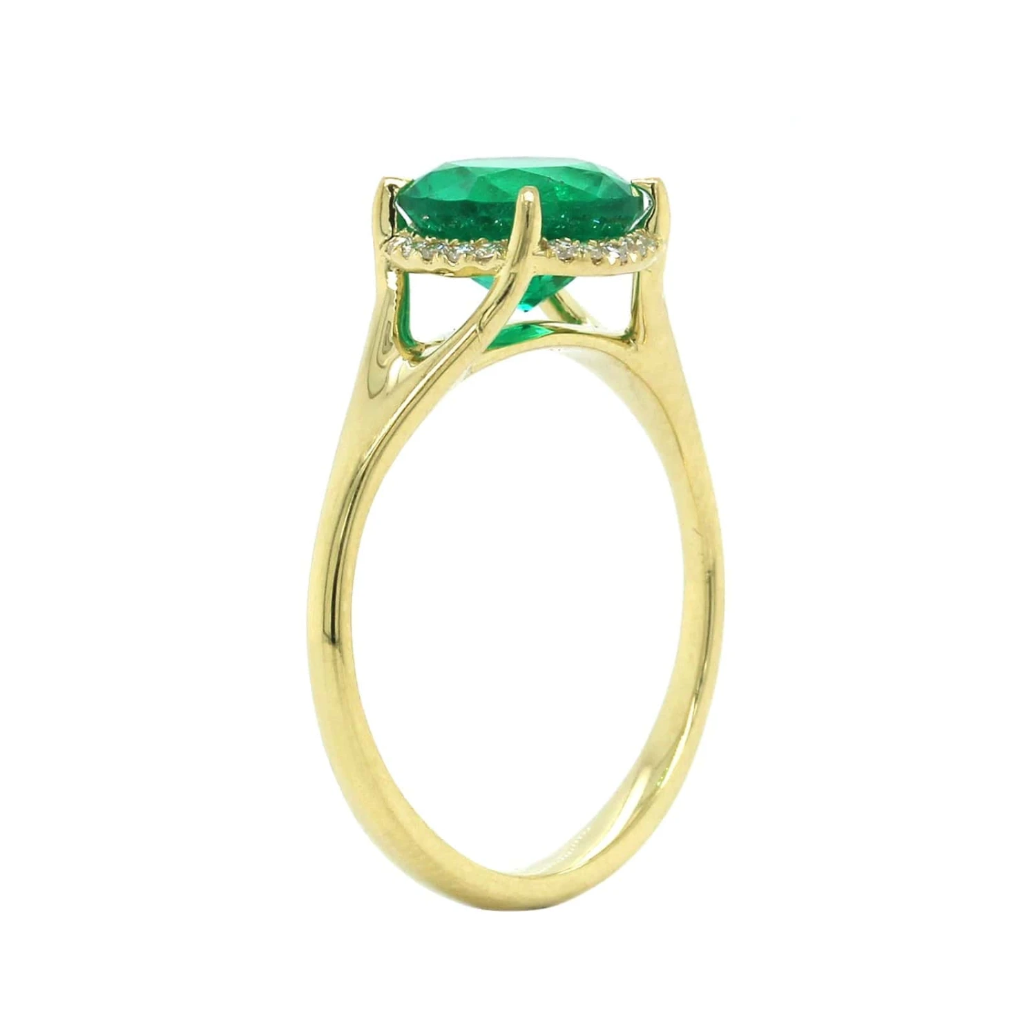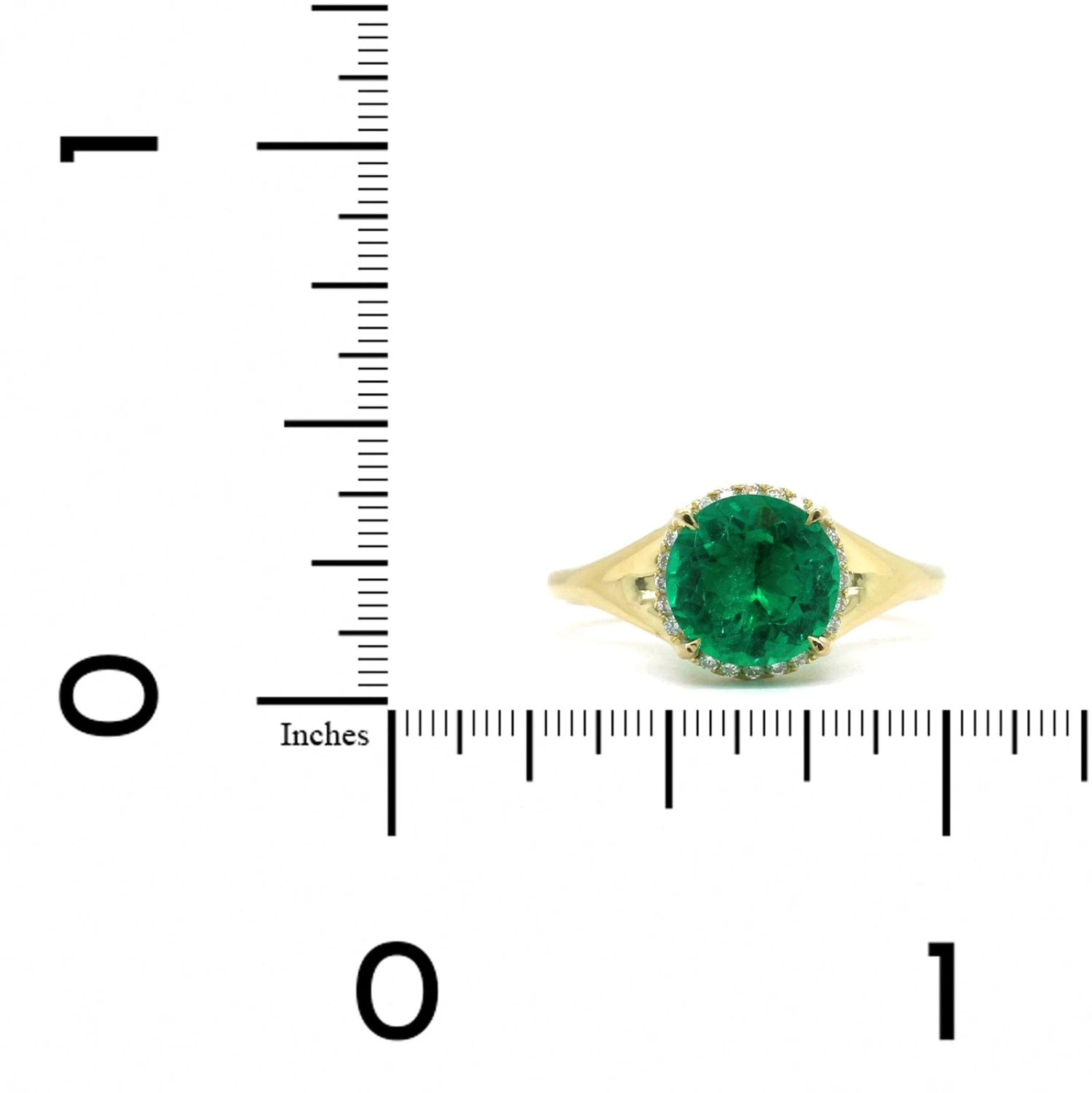 18K Yellow Gold Round Emerald Diamond Halo Ring