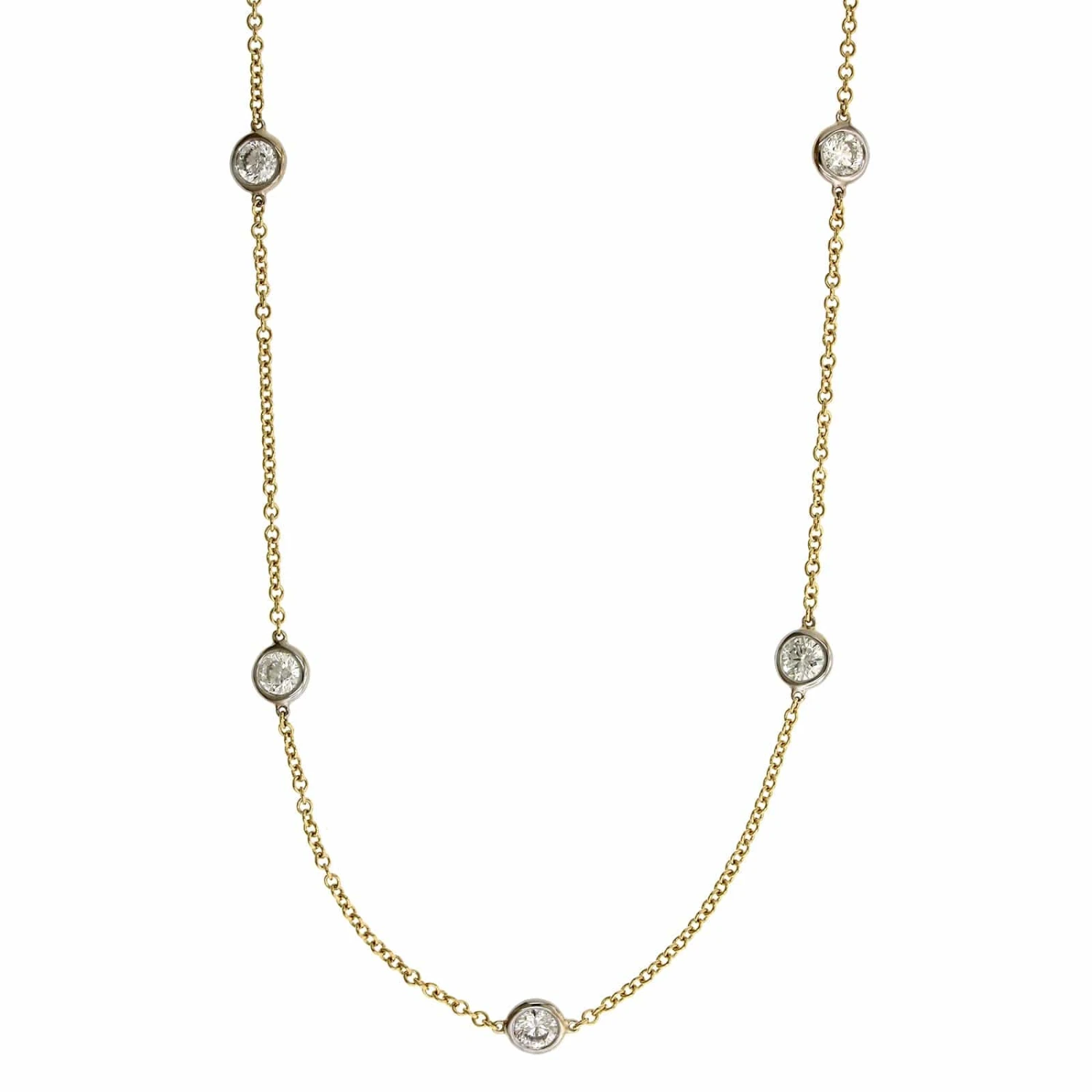 18K Yellow & White Gold 17 Stone Diamond Necklace