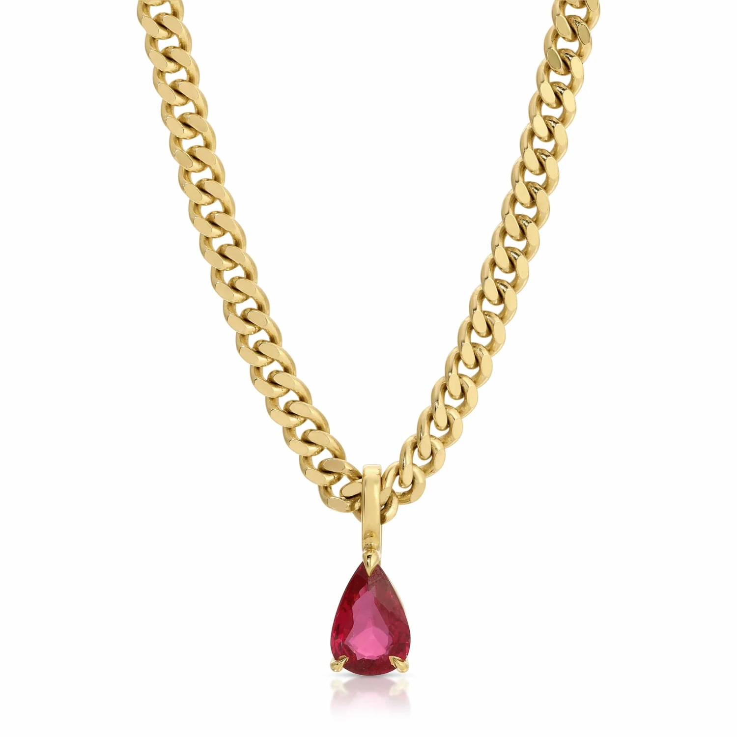 Anita Ko 18K Yellow Gold Curb Link Pear Ruby Pendant