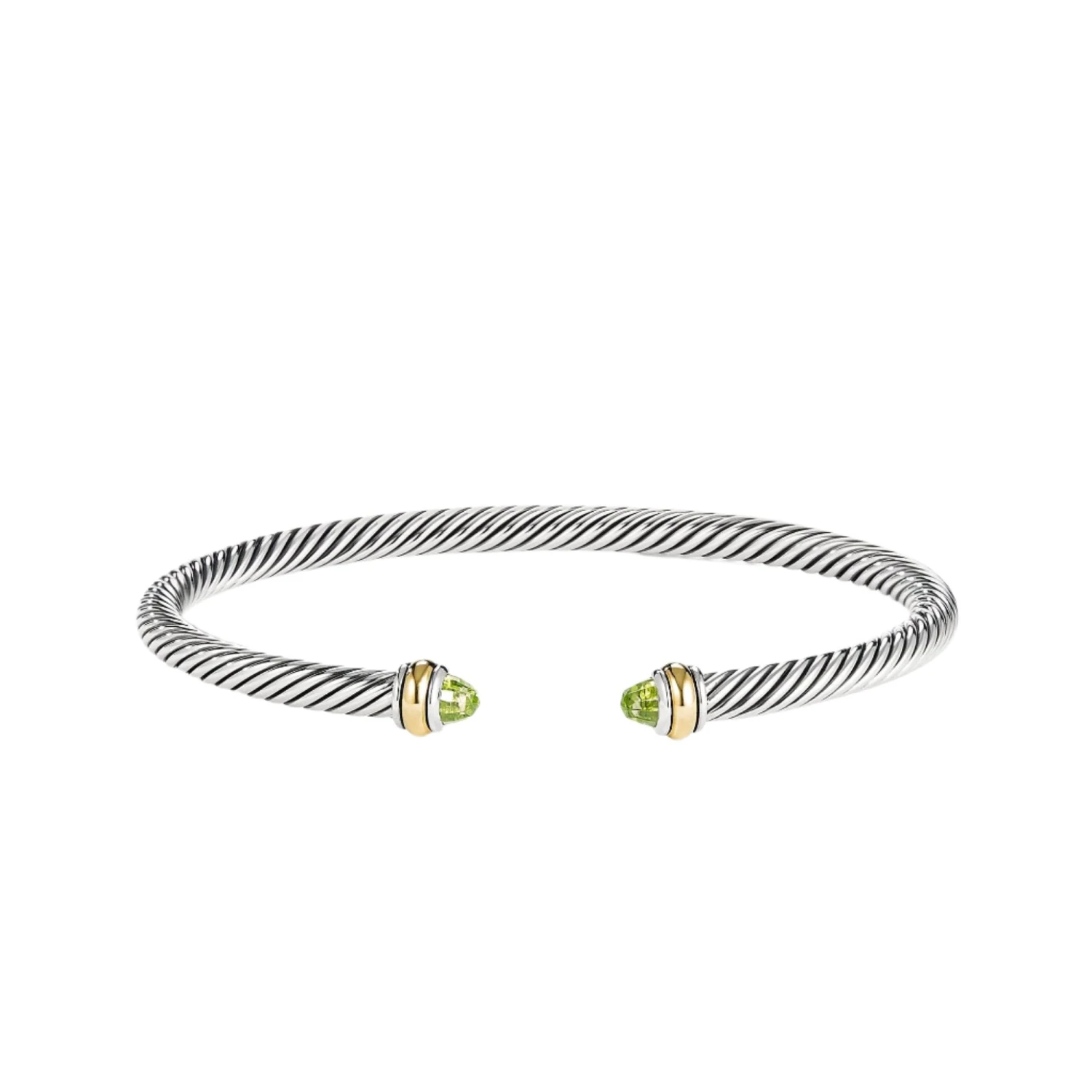 SKU: BG9UZ 4895377195143 Category: Bracelets Tags: Category: Bracelet, Designer: David Yurman, Fashion Jewelry, Metal: Sterling Silver, Metal: Yellow Gold, Nonsale, Price: $250-$500, Sku: B14711S8APRM, Stone: Peridot