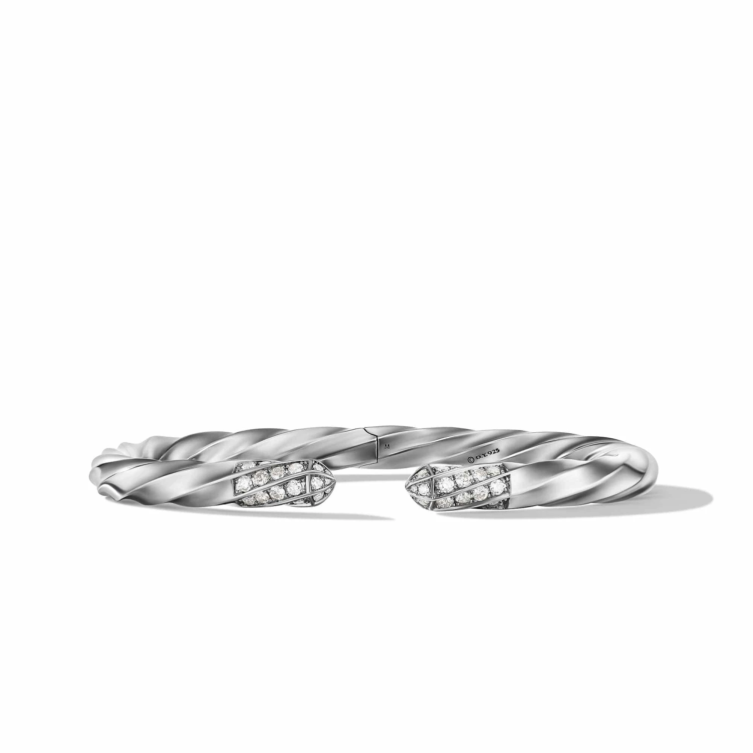 Cable Edge Bracelet In Recycled Sterling Silver With Pavé Diamonds