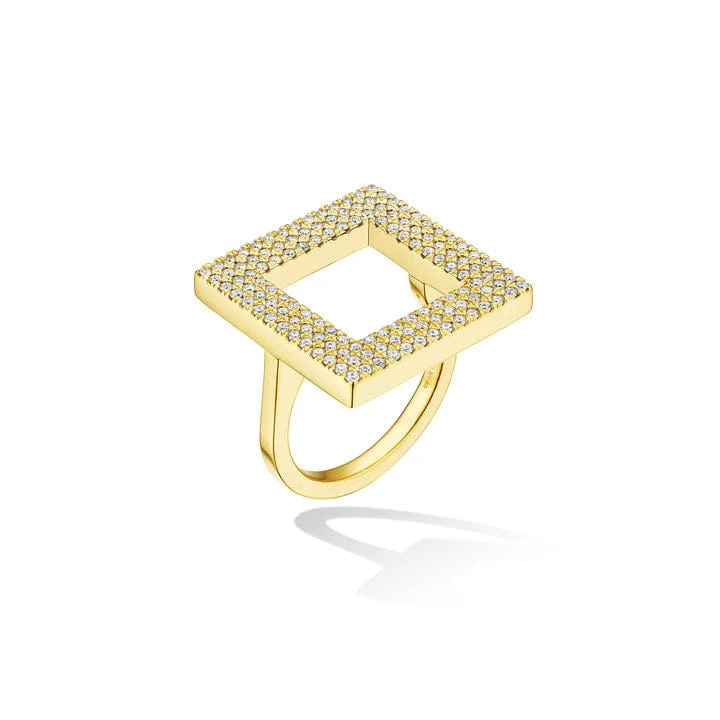 Cadar 18K Yellow Gold Pave Diamond Square Foundation Ring