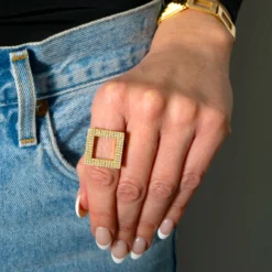 Be the first to review “Cadar 18K Yellow Gold Pave Diamond Square Foundation Ring” Cancel reply