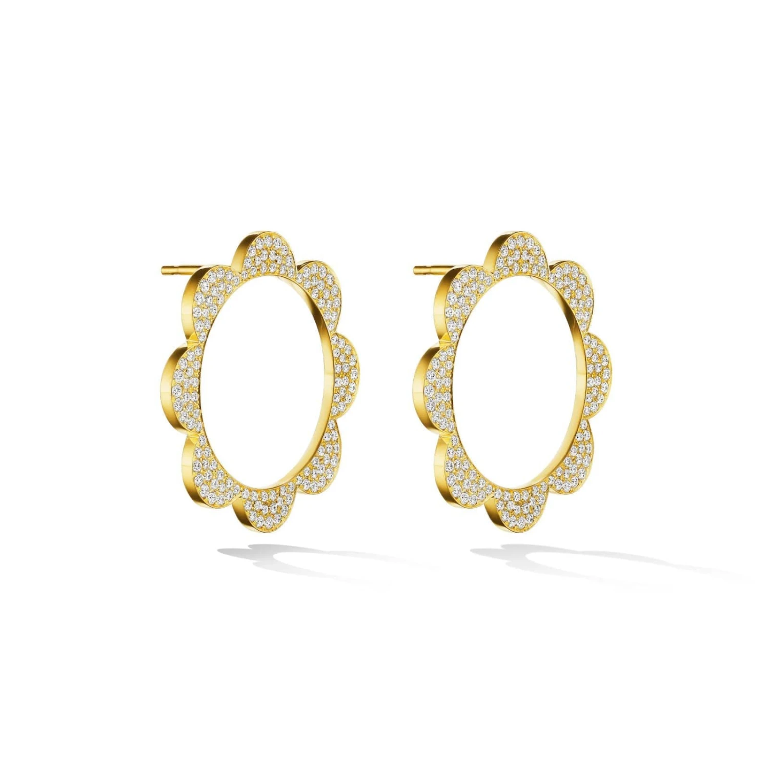 18k yellow gold studs with pave diamonds. From the bloom collection.