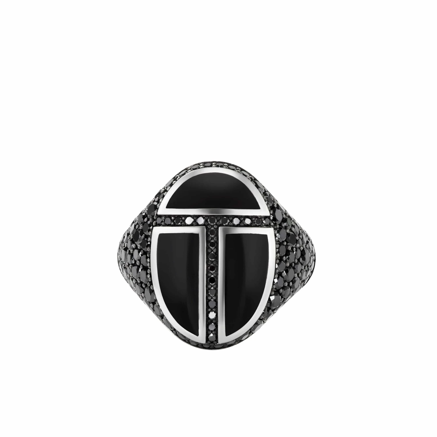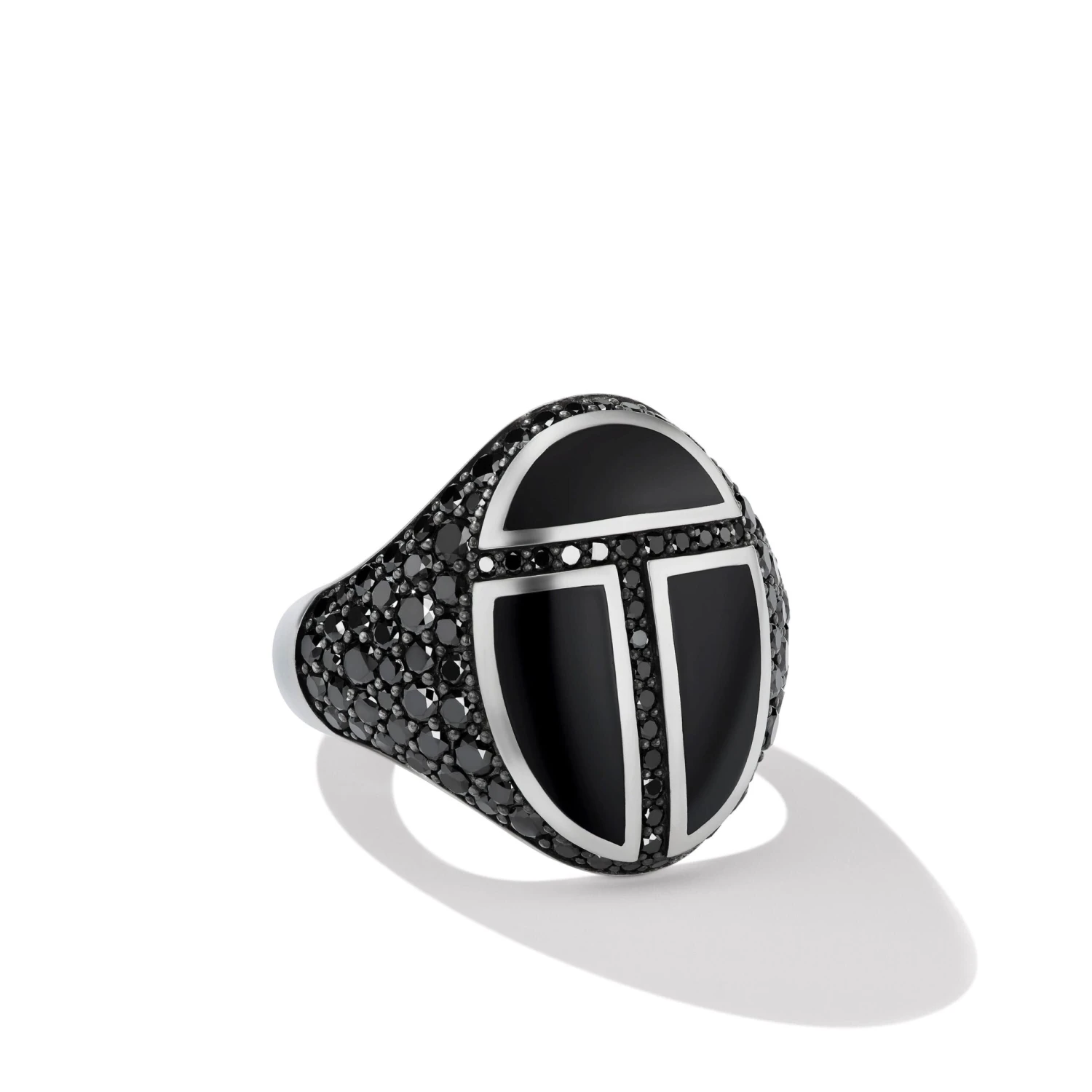 Cairo Signet Ring In Sterling Silver With Black Onyx And Pavé Black Diamonds