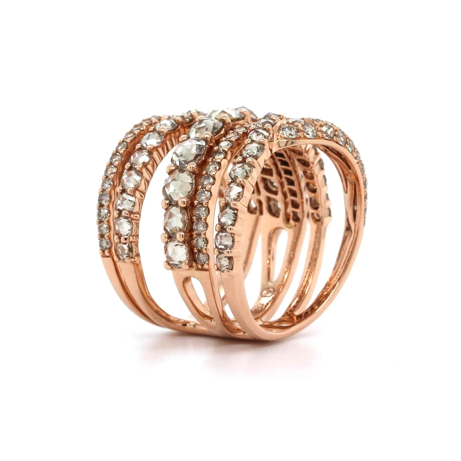 Etho Maria 18K Rose Gold Multi-Row Brown Diamond Ring