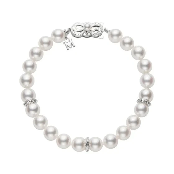 Mikimoto 18K White Gold Pearl Diamond Roundel Bracelet