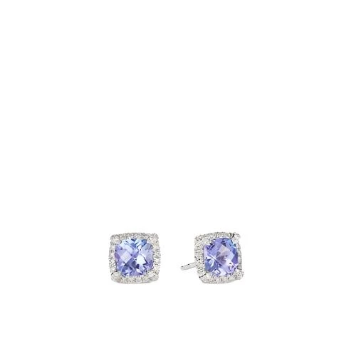 Petite Chatelaine® Pavé Bezel Stud Earrings In 18K White Gold With Tanzanite