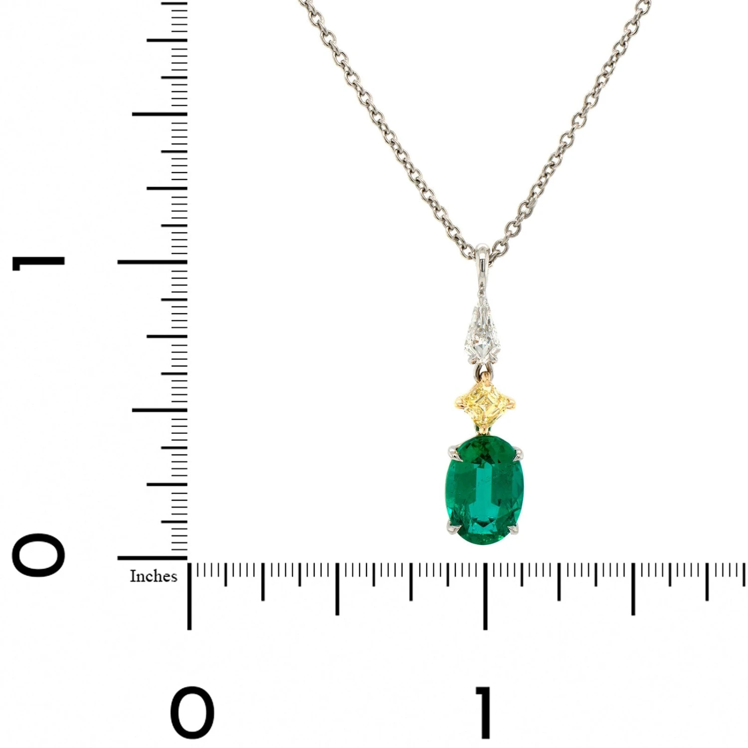 Platinum & 18K Yellow Gold Necklace With A Yellow Diamond & Emerald Pendant