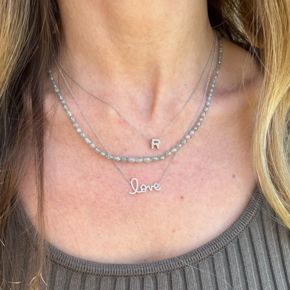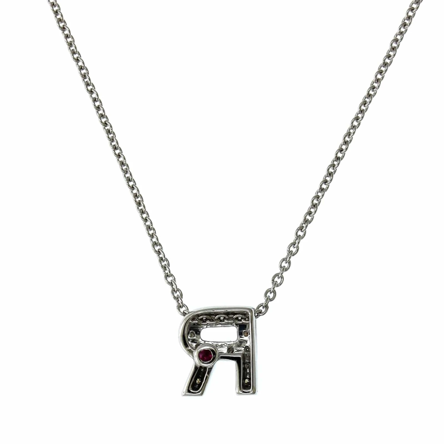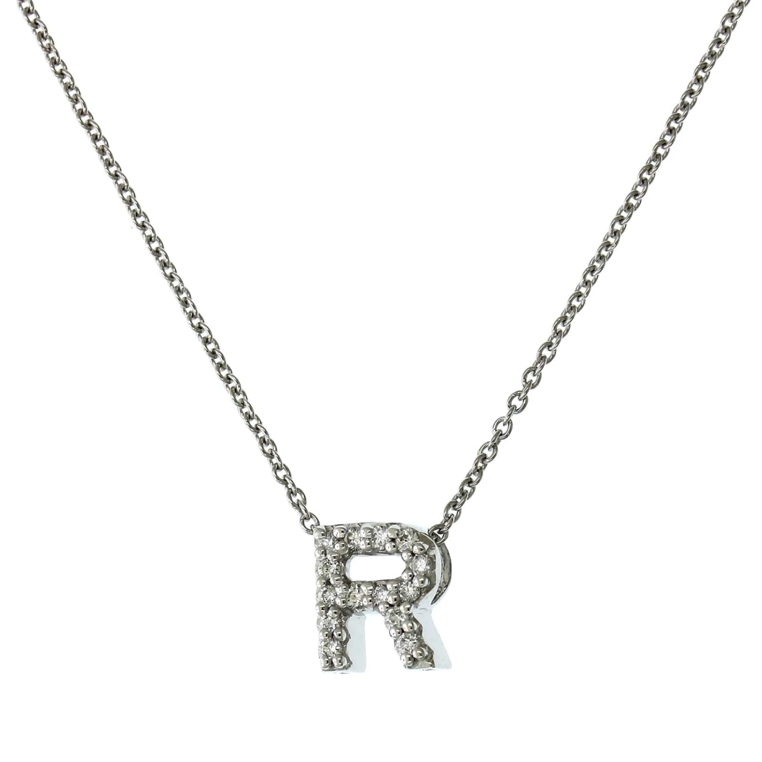 Roberto Coin 18K White Gold “R” Initial Diamond Necklace