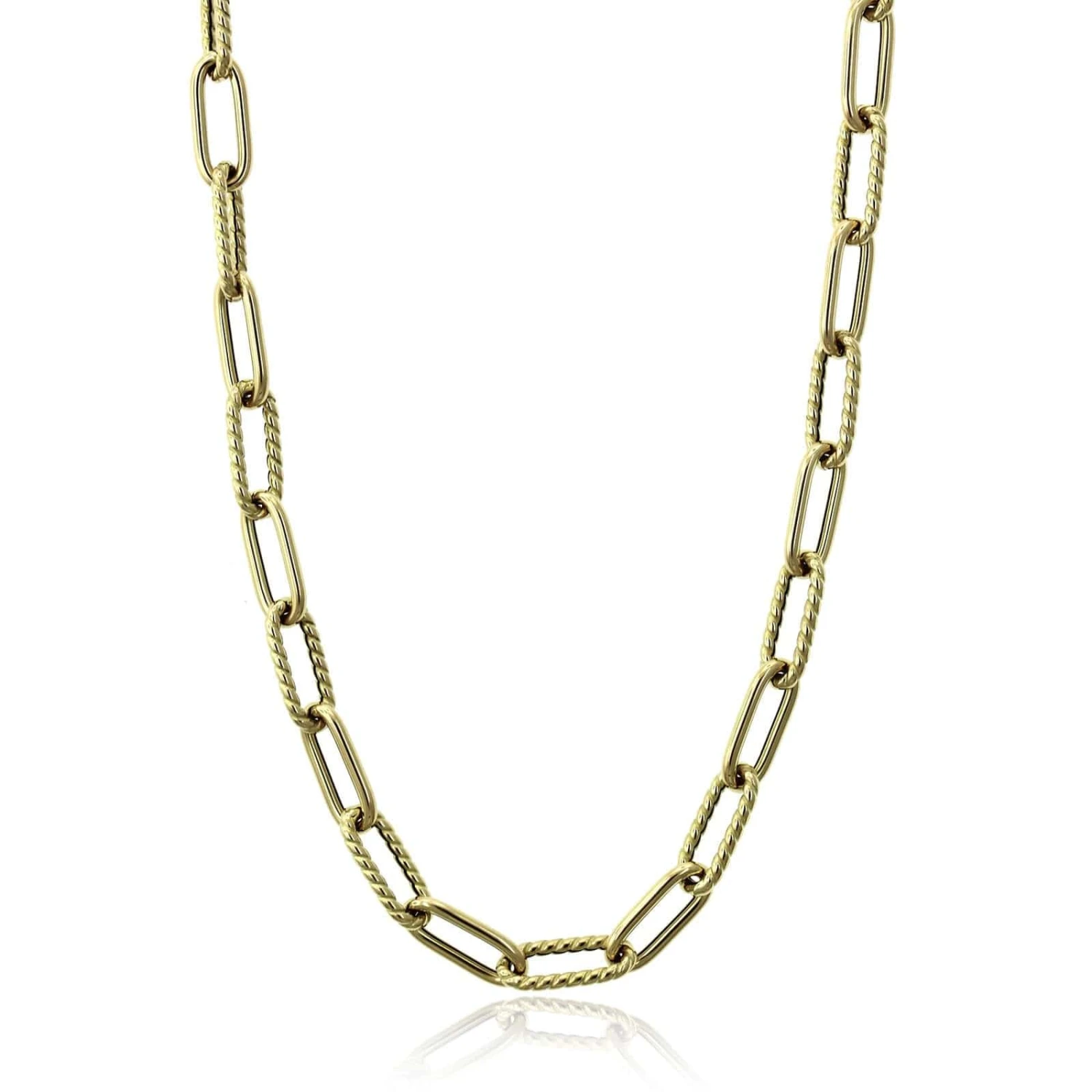 18k yellow gold paperclip chain necklace with alternating fluted and polished links.