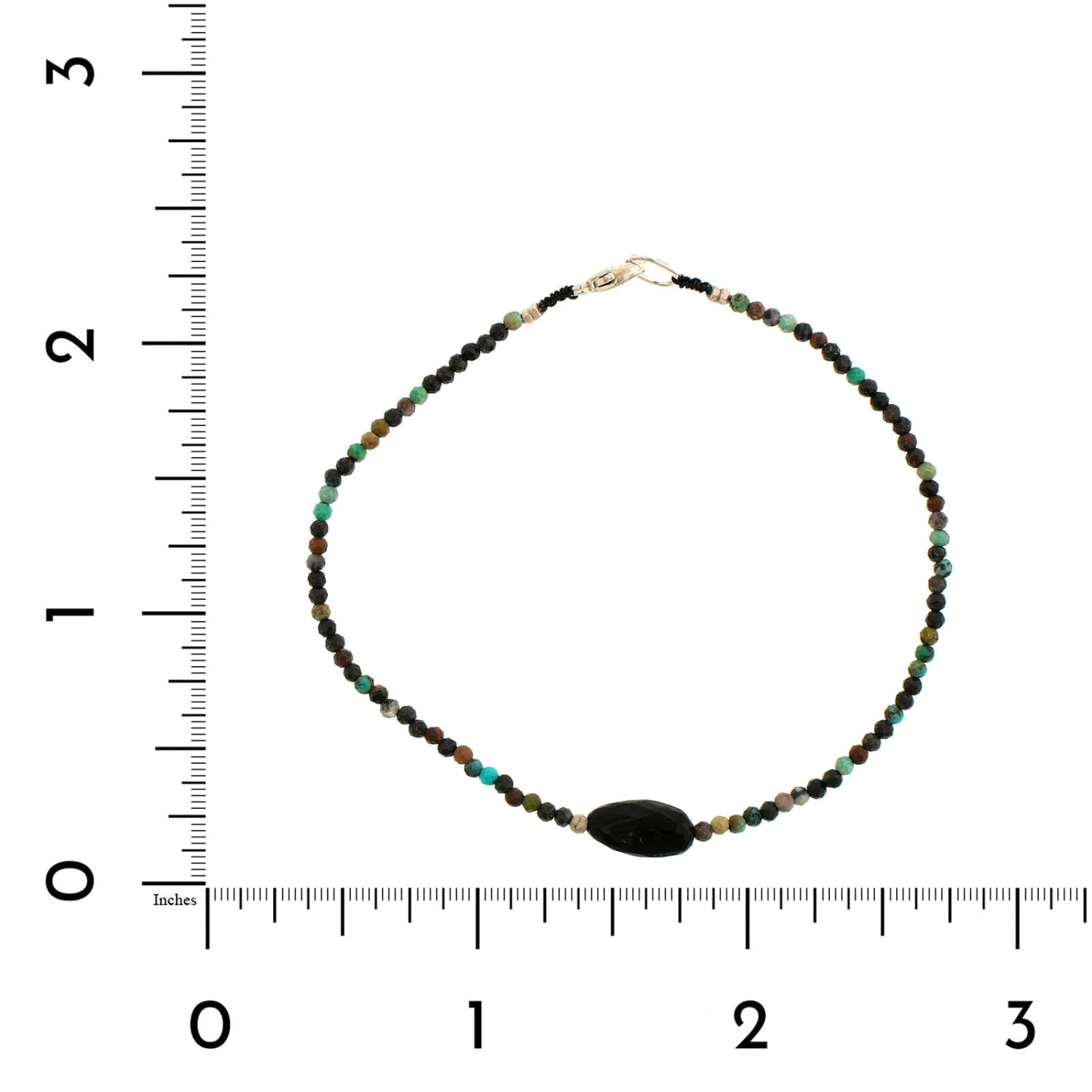 Chrysocolla beaded bracelet with an opal in the center and a sterling silver clasp.