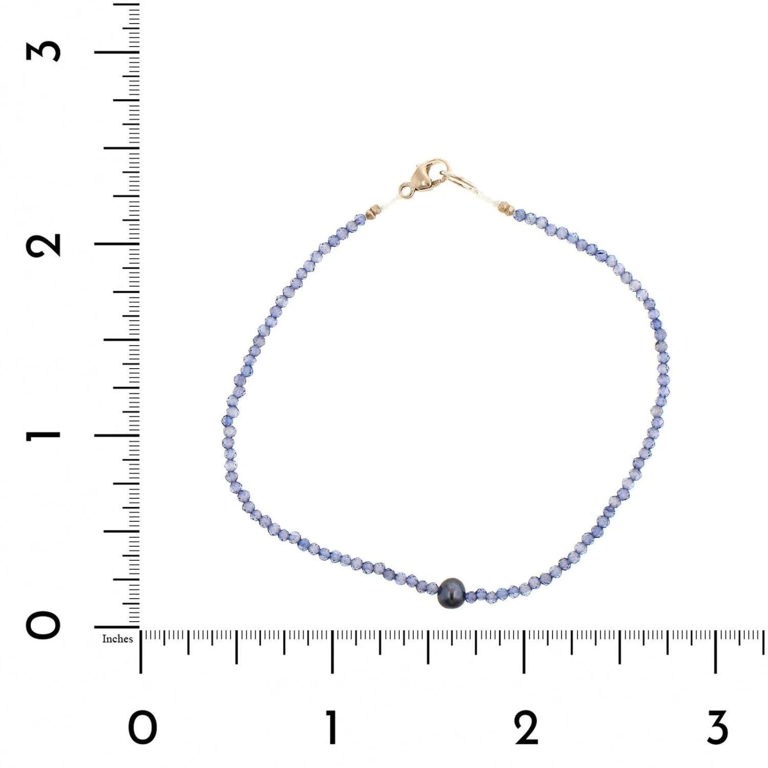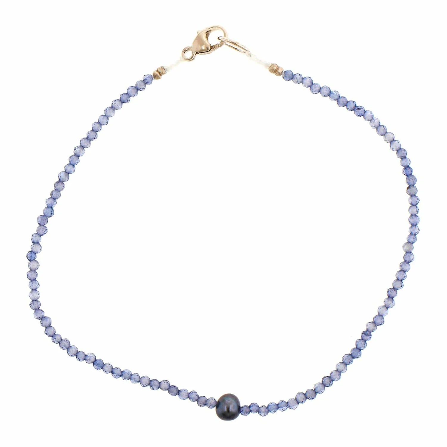 Iolite beaded bracelet with a small pearl in the center with a sterling silver clasp.