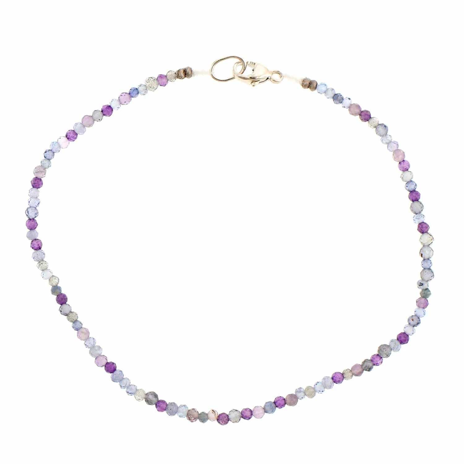 Sterling Silver Multi Gem Purple Beaded Bracelet